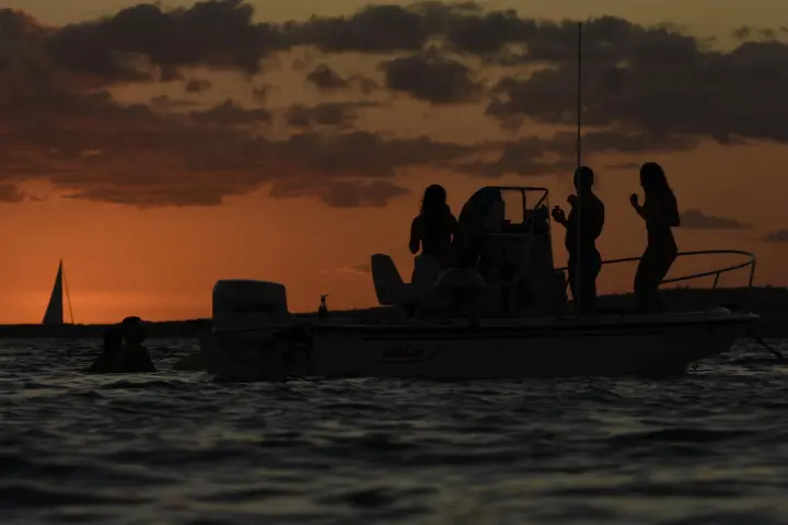 Once there, we eat at a local restaurant, Isla Cueva. Afterward, we get on a private boat and go to a sand bar at an area of crystal-clear water in the middle of the Caribbean Sea.